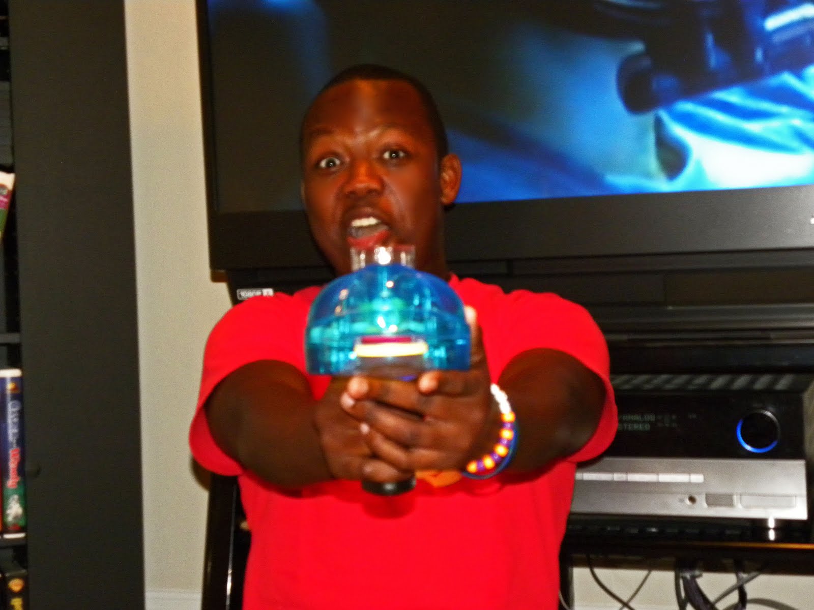This is my friend Harold playing with Katy's nerf gun. It was pretty legit; I am not going to lie. The nerf gun shoots out neon disks at the speed light... you can't beat that. Avatar was on in the background, even though none of us were watching it. Avatar is one of the top grossing films and they spent 10 years making it! I mean I am surprised they didn’t have a scene with Harold in it… he fits right in! ;) Tonight was filled with nerf guns and Avatar... boom (pelvic thrust). Haha!